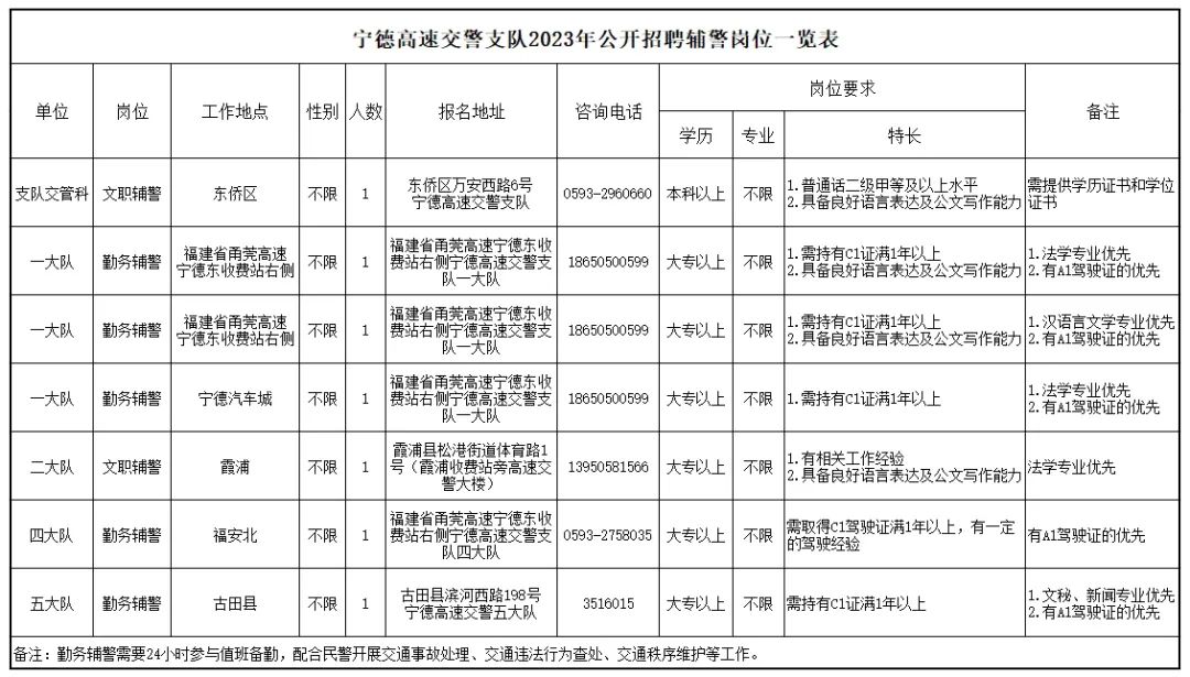 2023年宁德高速交警支队公开招聘7名警务辅助人员公告