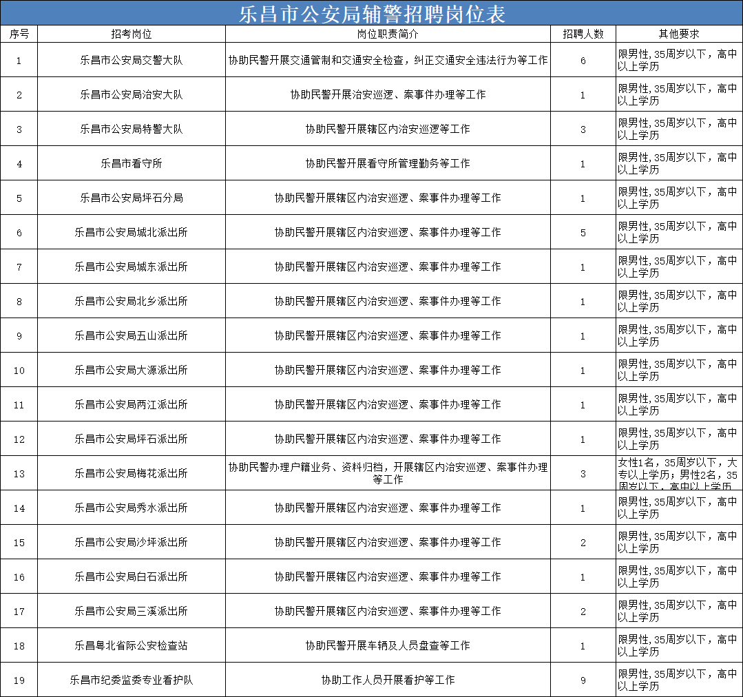 附件:《乐昌市公安局招聘警务辅助人员职位表》