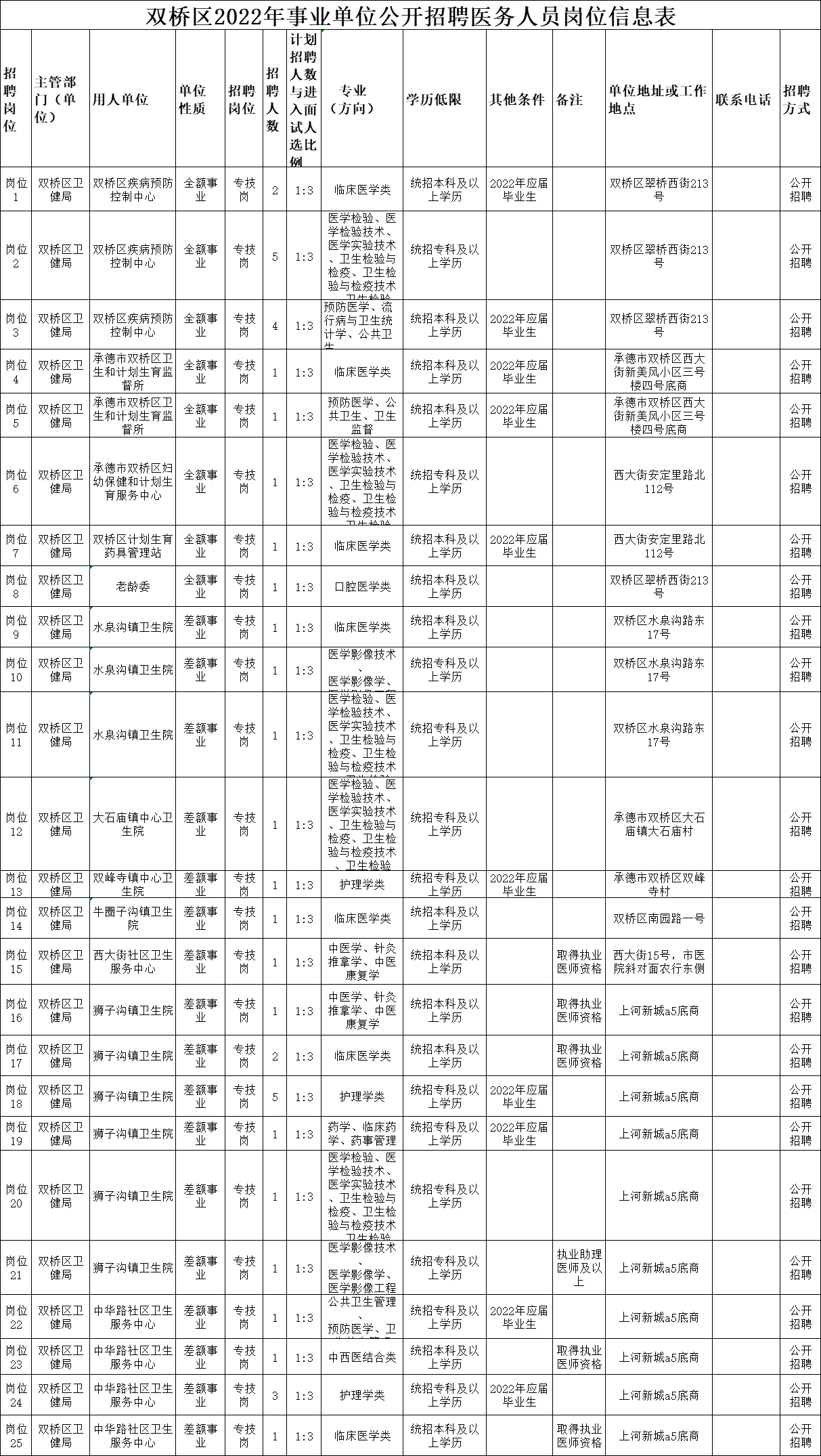 3统招硕士研究生学历不限户籍;(具体岗位要求详见《双桥区2022年公开招聘事业单位医务人员岗位信息表》);