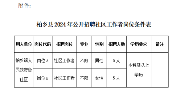 附件:《柏乡县2024年公开招聘社区工作者岗位条件表》
