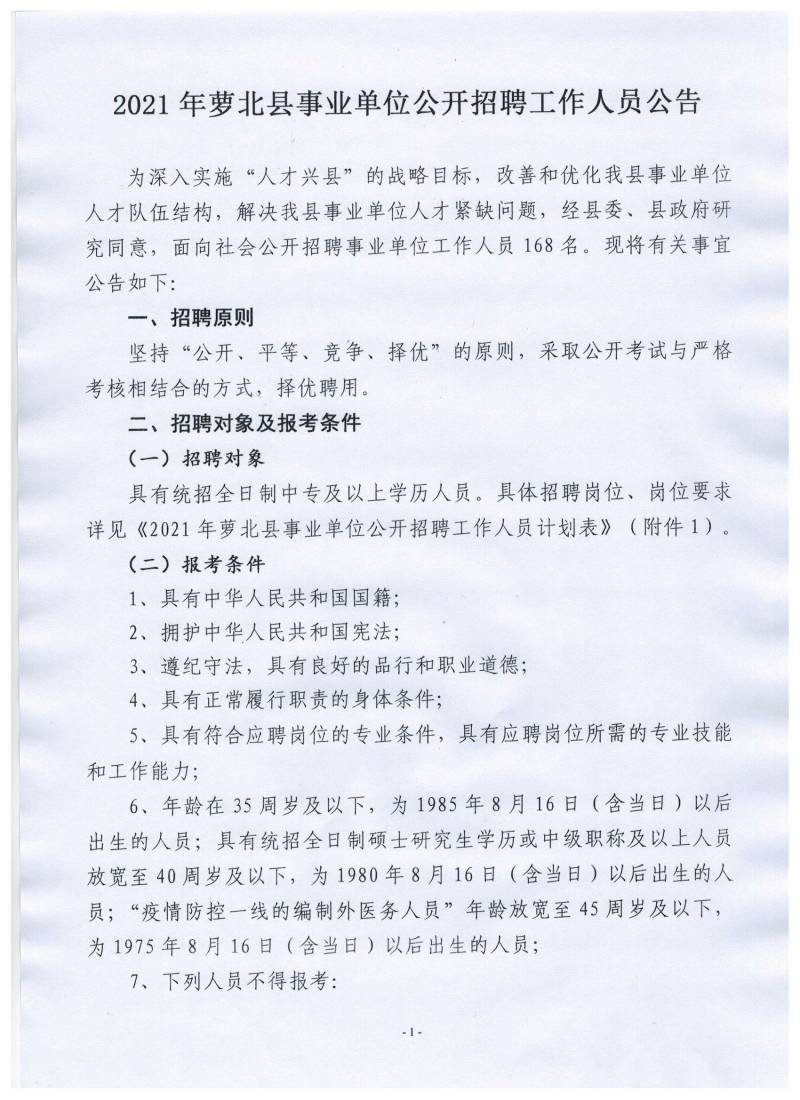2021年鹤岗萝北县事业单位公开招聘工作人员公告