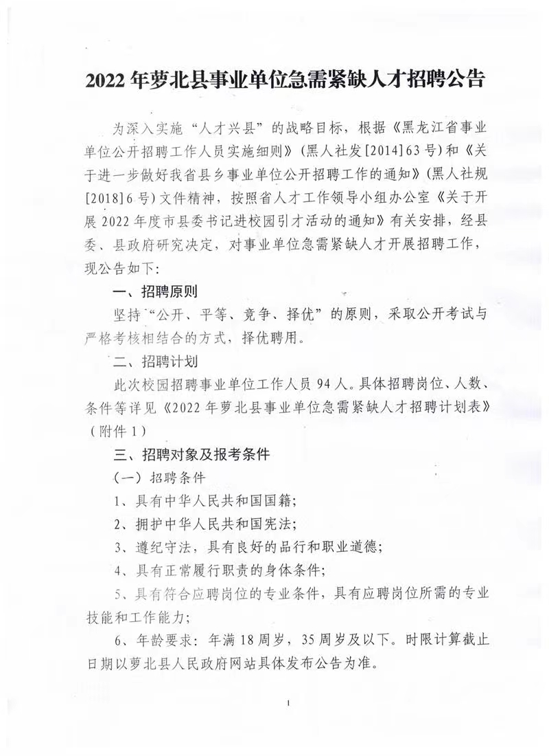 2022年鹤岗萝北县事业单位急需紧缺人才招聘公告