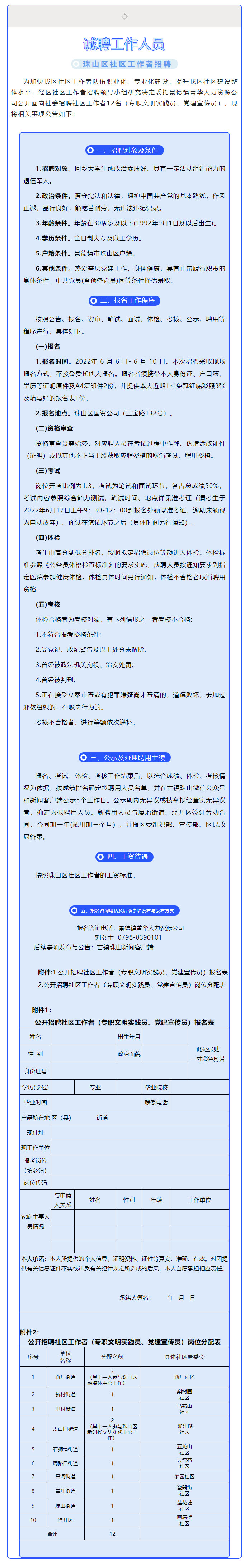 为加快我区社区工作者队伍职业化、专业化建设,提升我区社区建设整体水平,经区社区工作者招聘领导小组研究决定委托景德镇菁华人力资源公司公开面向社会招聘社区工作者12名(专职文明实践员、党建宣传员),现将相关事项公告如下: