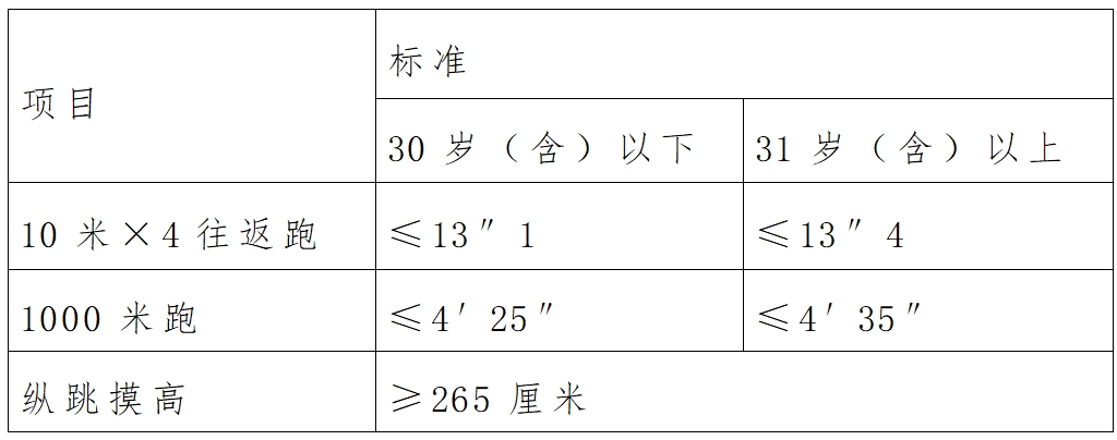 1.体能测试入围人员:资格复审合格人员参加体能测试。