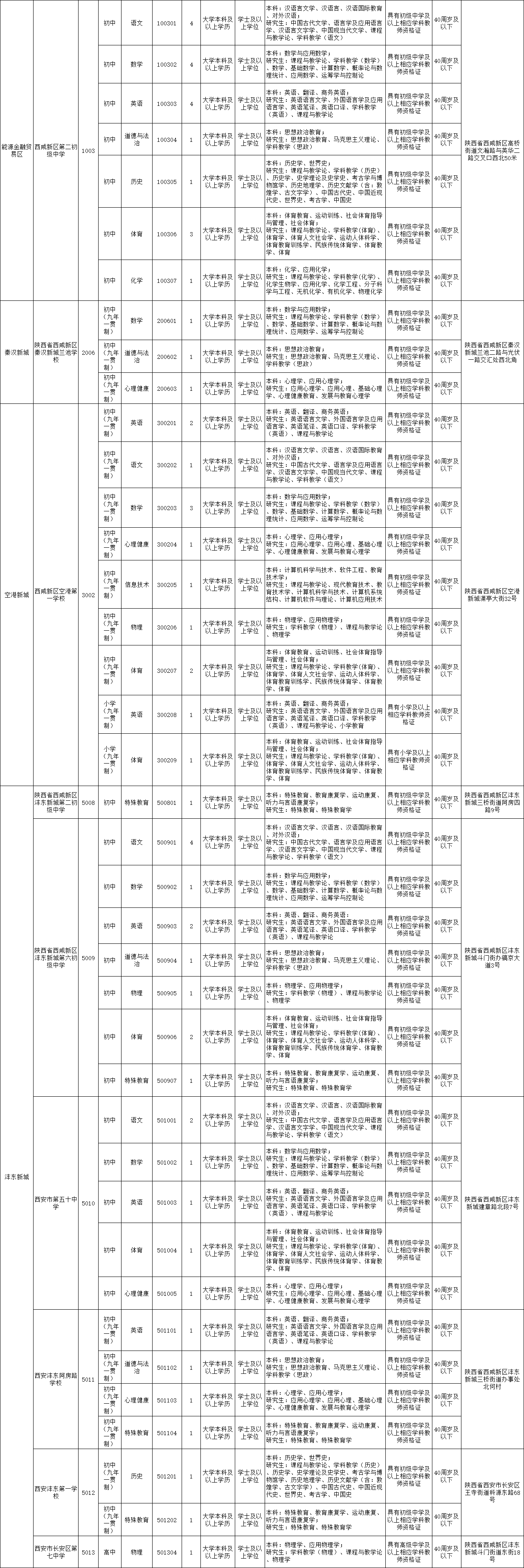 西咸新区2025年教育系统公开招聘岗位需求一览表(教师岗位190人)