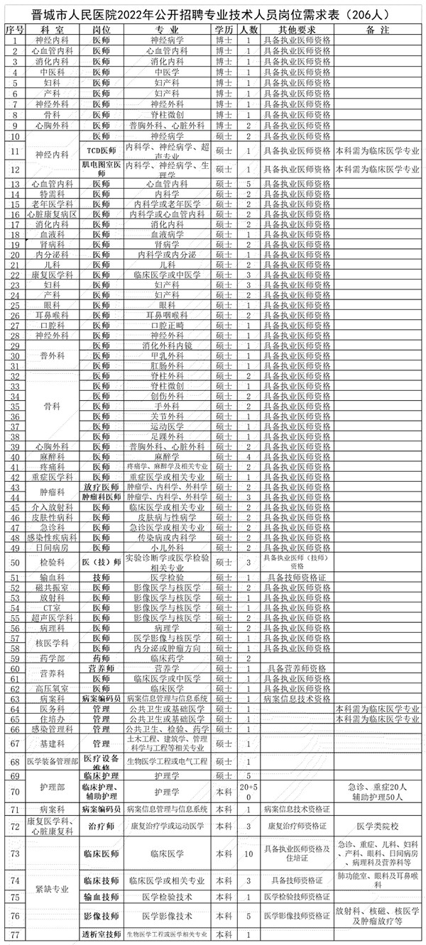 2022年晋城市人民医院公开招聘专业技术人员公告
