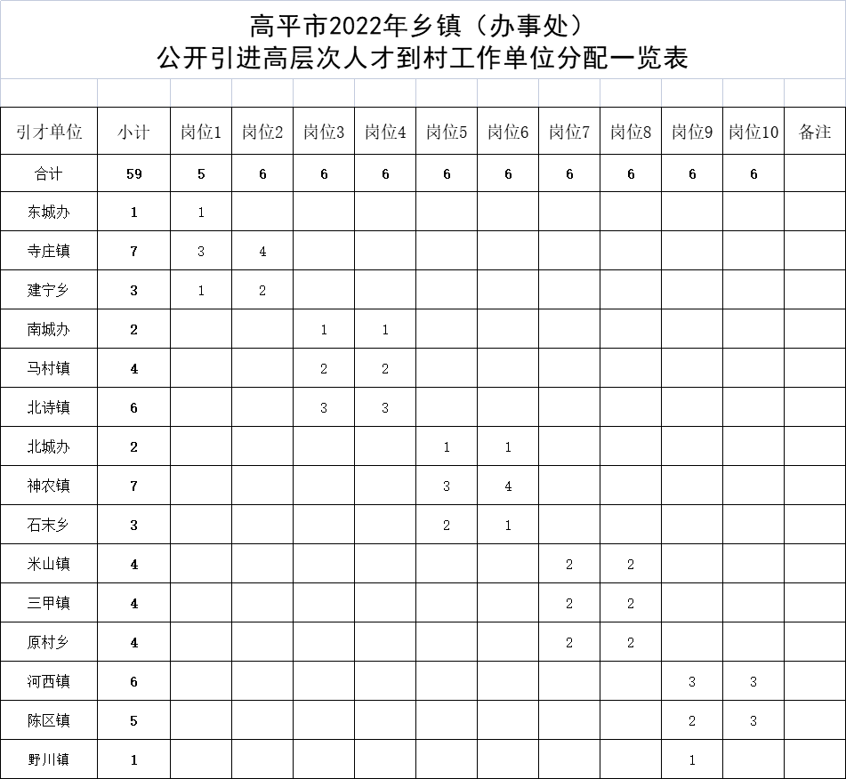 附件2:《高平市2022年乡镇(办事处)公开引进高层次人才到村工作单位分配一览表》