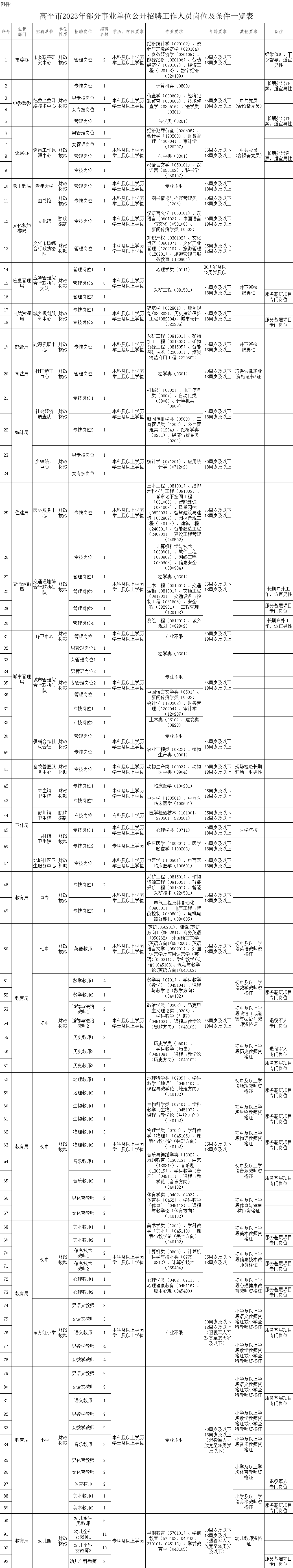 1.《高平市2023年部分事业单位公开招聘工作人员岗位及条件一览表》