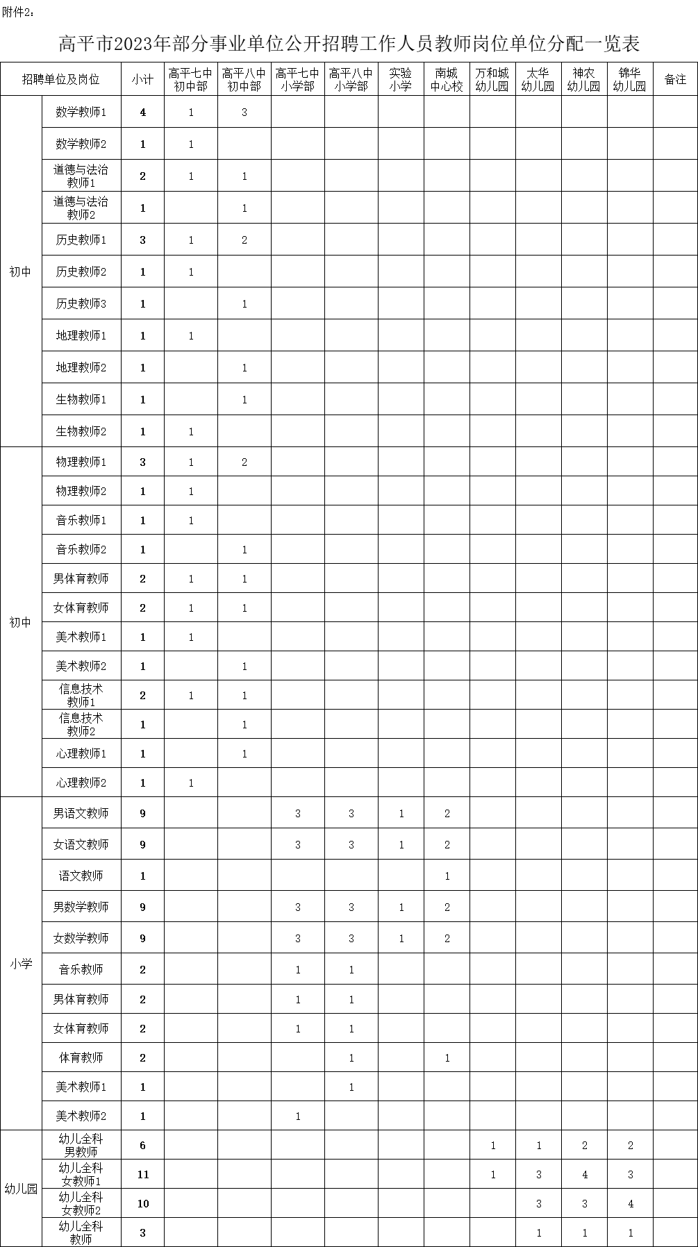 2.《高平市2023年部分事业单位公开招聘工作人员教师岗位单位分配一览表》