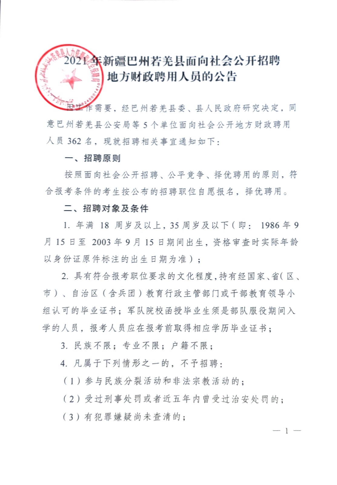 2021年巴州若羌县面向社会公开招聘地方财政聘用人员公告