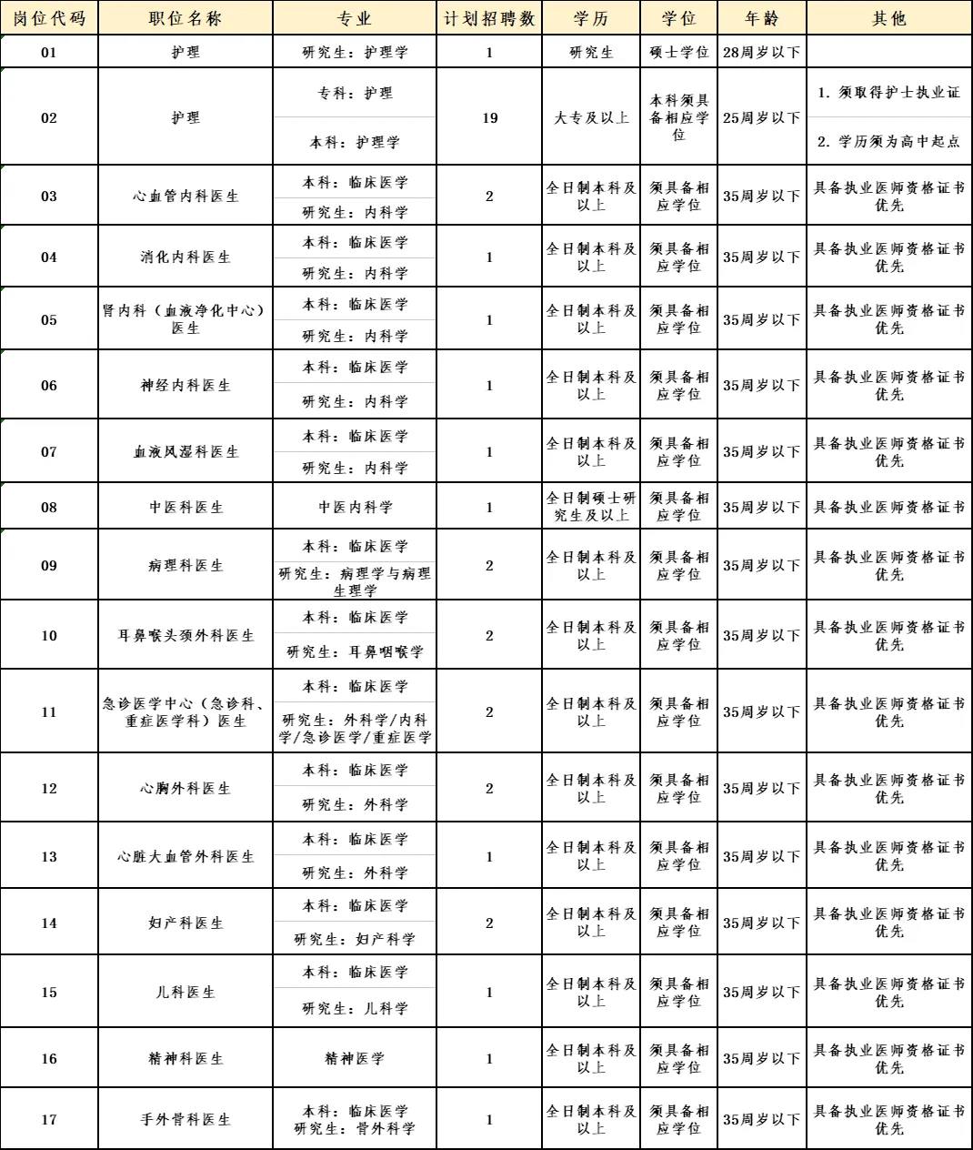 正值医院蓬勃发展之际,我院面向各学历层次社会招聘医护人员若干名,现将相关事项公告如下: