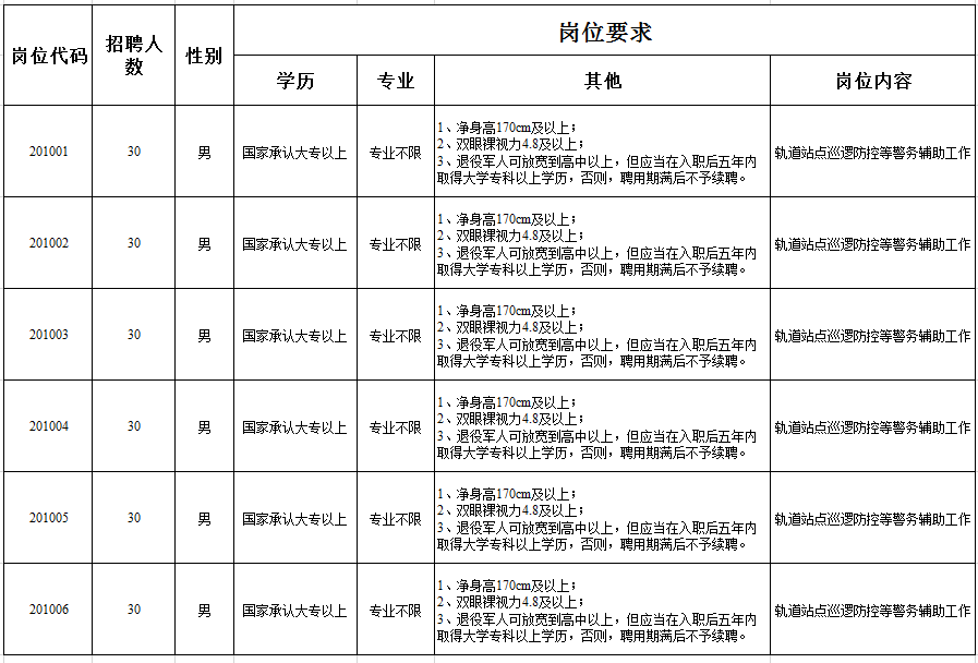 4.双眼裸视力达到4.8及以上,五官、体型端正、具有正常履行职责的身体条件,无明显生理缺陷及特征、传染性疾病、残疾、口吃、重听、色盲(弱)、纹身;