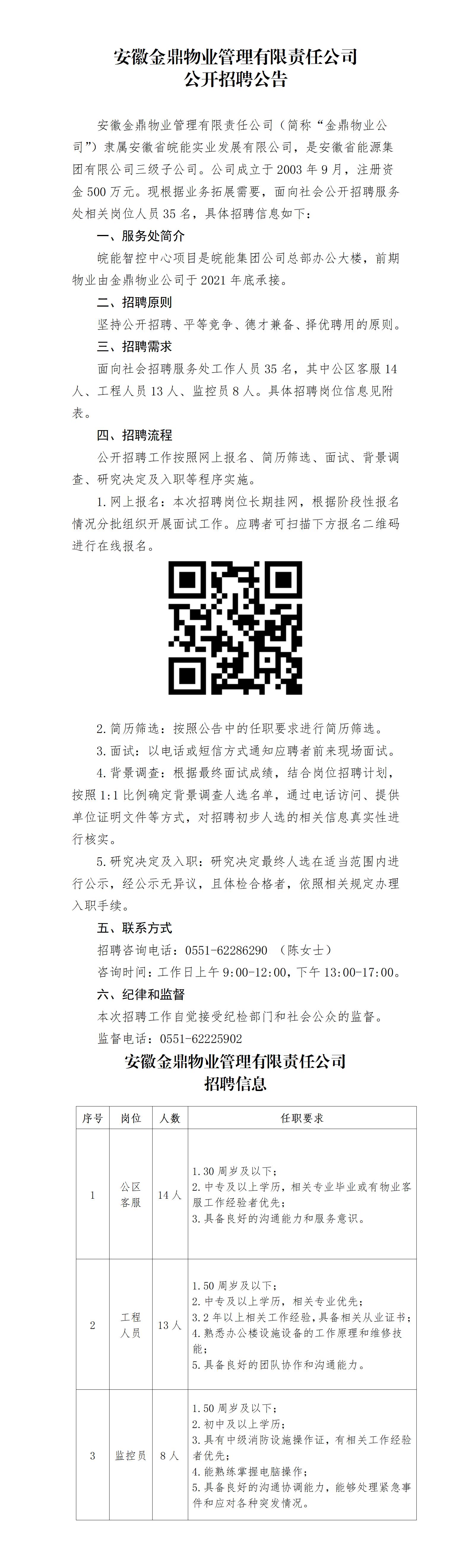 2024年安徽金鼎物业管理有限责任公司公开招聘公告