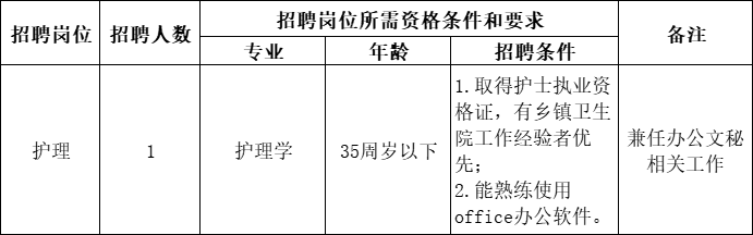 因工作需要,休宁县万安镇卫生院经研究决定通过黄山市仁和人力资源服务有限公司面向社会公开招聘护理人员1名,现将有关事项公告如下: