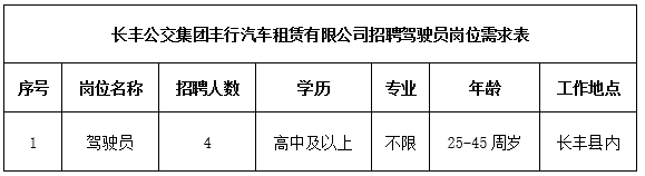 4、长丰县丰行汽车租赁有限公司对本次招聘享有最终解释权;