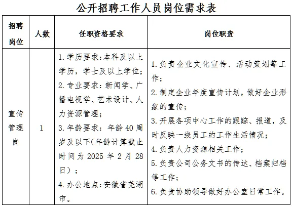2025-03-05 08:59:16阅读()安徽国资芜湖长能物流有限责任公司成立于2010年,由安徽电力燃料有限责任公司和长航货运有限公司合资组建,安徽电力燃料有限责任公司控股。公司位于安徽省芜湖市,注册资本金1亿元。公司拥有自有海轮2艘/11万载重吨,自有江船及核心运力25艘/24万载重吨,控制社会运力近150万载重吨。公司是皖能集团电煤唯一水运物流平台,为省内8家主力电厂、1338万千瓦机组提供煤炭运输保供,为安徽省清洁能源保障做出了积极贡献。新时期,公司立足皖江,积极融入长三角,与沿江各大钢厂、煤电企业建立了广泛的业务联系,共同服务国民经济发展大局。公司秉承“扎根长江,向海而生”的经营理念,稳健快速发展,已经成为一家年货运量超3000万吨级的大型航运企业。现因工作需要,经研究决定公开招聘工作人员1名,现将有关事项公告如下: