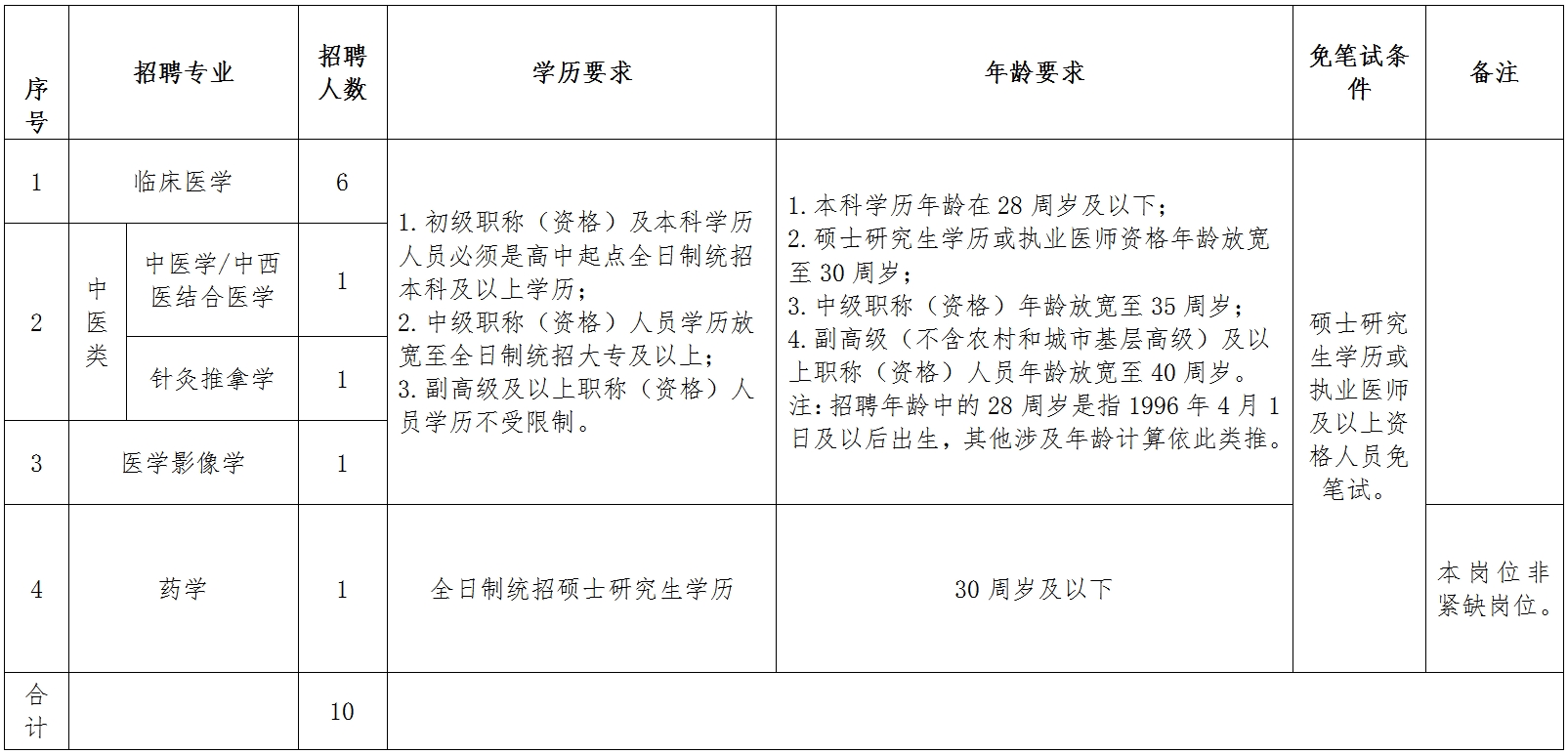2.硕士研究生学历或执业医师资格年龄放宽至30周岁;