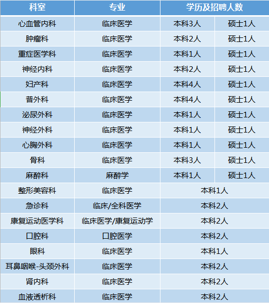 现因业务持续快速发展的需要,现面向校园和社会广纳人才,我们热切地期待有识之士的加盟,医院将为您提供广阔的视野发展机遇和平台。