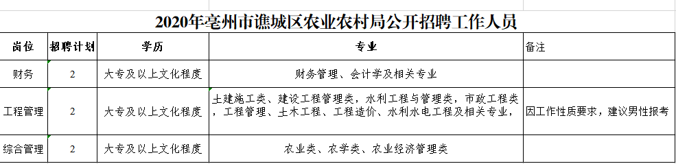 亳州市谯城区农业农村局公开招聘6名工作人员,现将招聘事项公告如下: