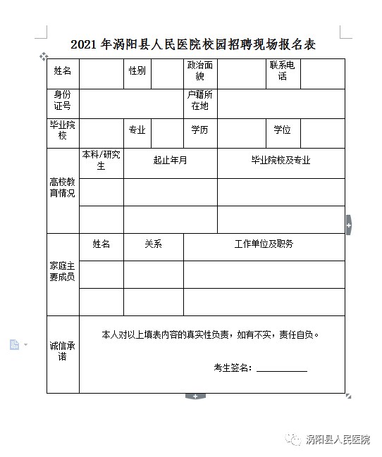 报名地点:涡阳县人民医院人力资源部或发送个人简历到841940726@qq.com邮箱。