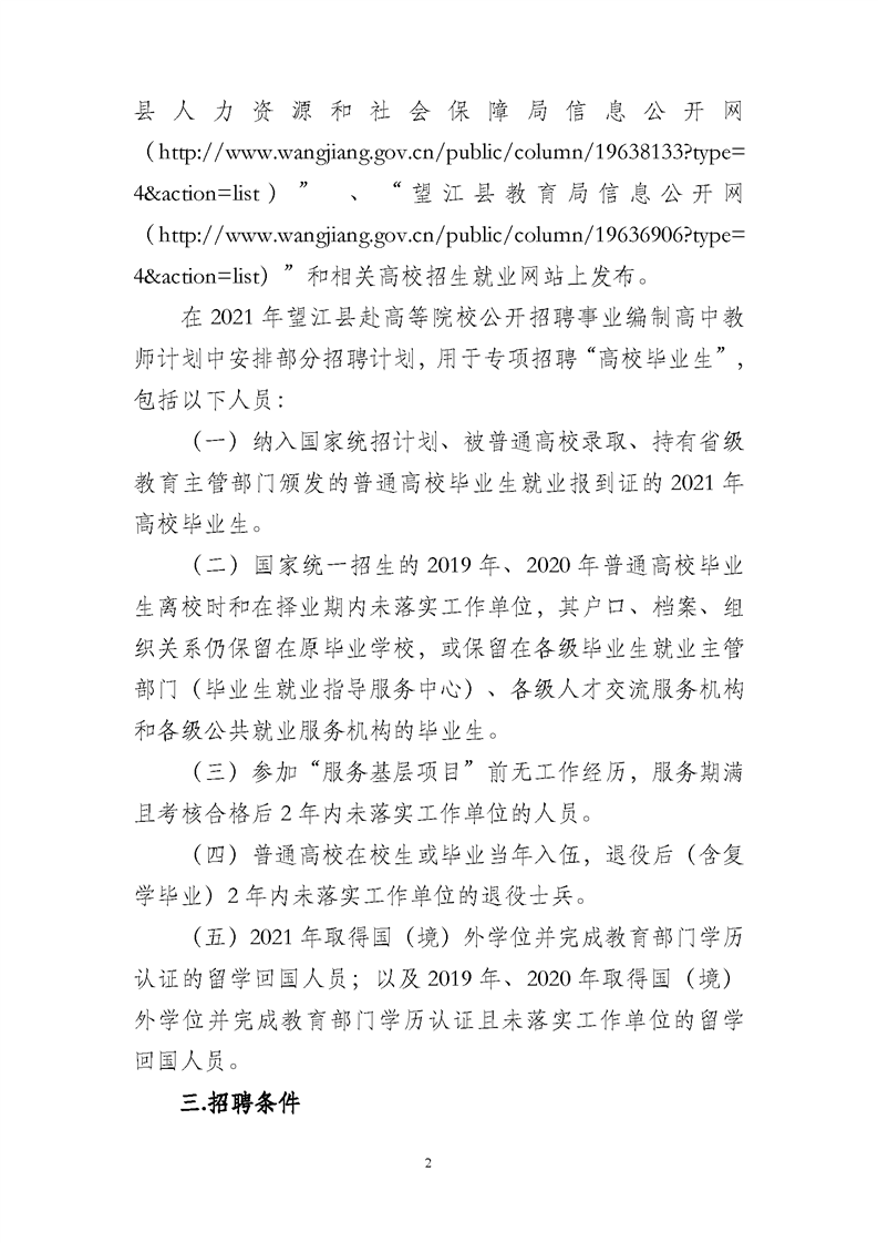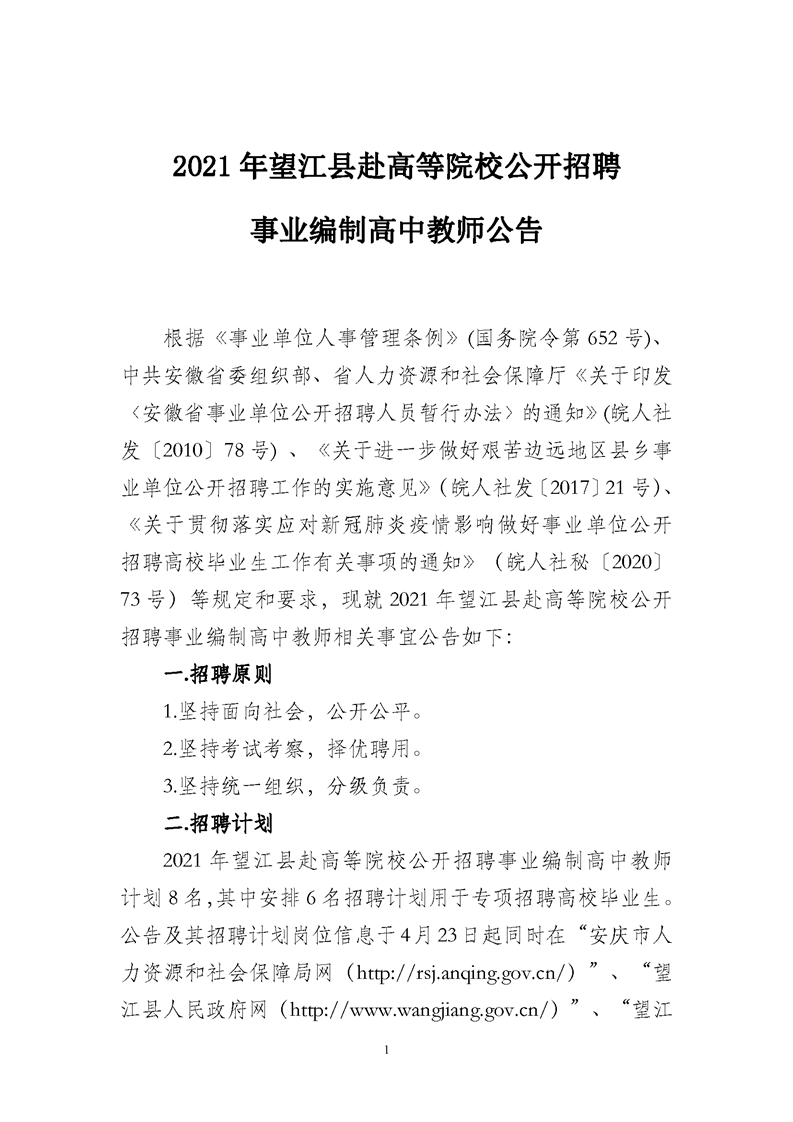 2021年安庆望江县赴高等院校公开招聘事业编制高中教师公告