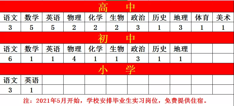 聘用要求:优秀本、硕毕业生(有教学经验者优先)、退休后有志于一线教学的优秀教师。