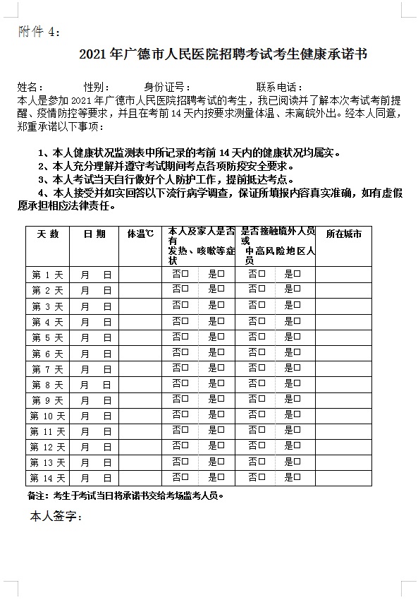 4、健康承诺书