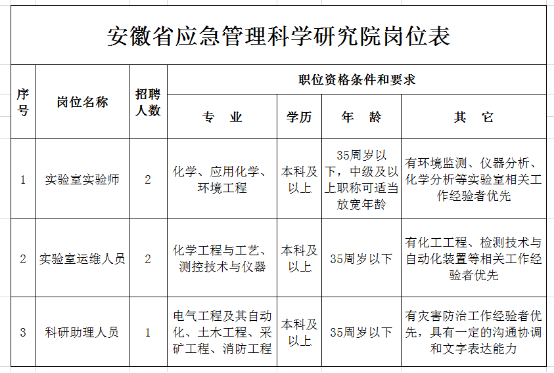2021-11-09 10:17:50阅读()安徽省应急管理厅根据工作需要,安徽省应急管理科学研究院委托合肥市知百企业管理服务有限公司面向社会公开招聘5名工作人员,现就有关事项公告如下: