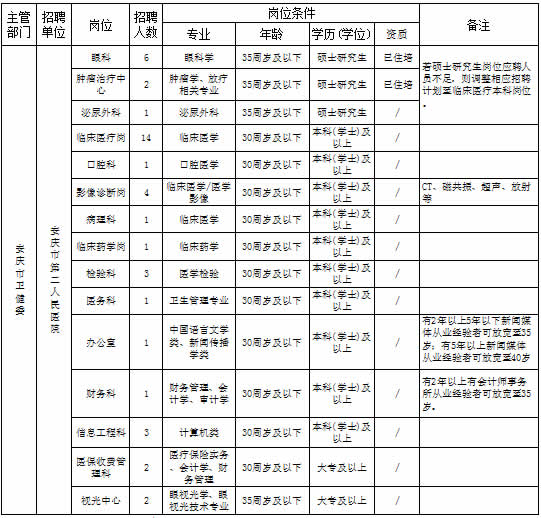 2020年安庆市第二人民医院(安庆市肿瘤医院)专业技术人员公开招聘公告
