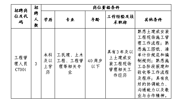 现根据公司项目开发需要,招聘派遣制员工3名。有关要求及事项公告如下: