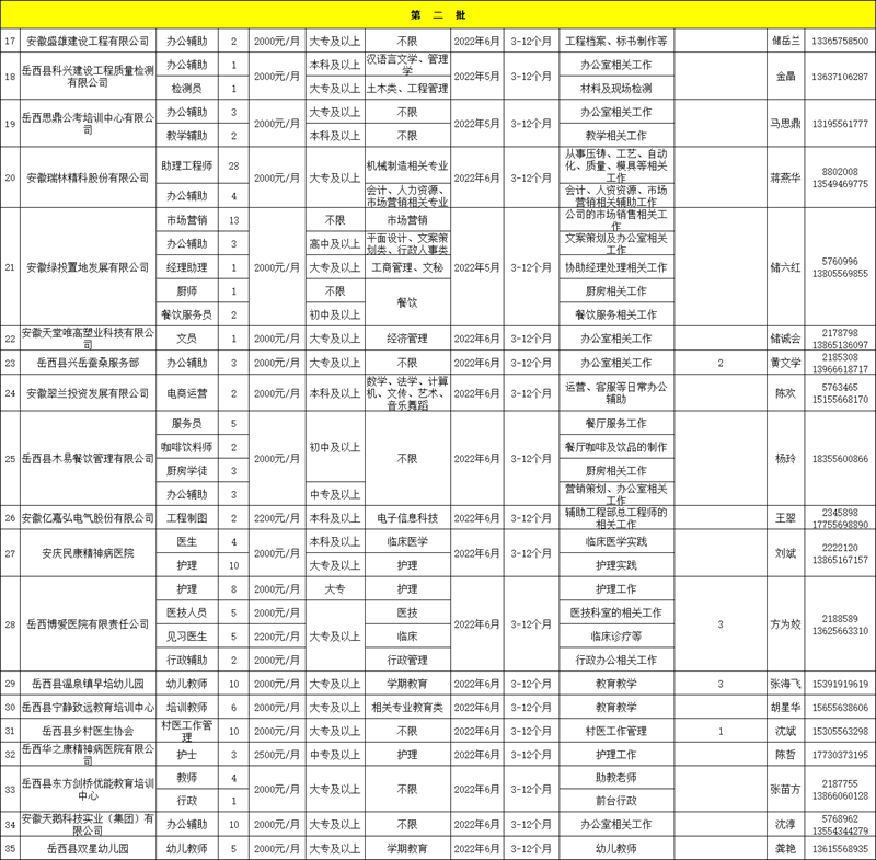 附件:《2022年度岳西县就业见习招募岗位计划(第二批)》(含第一批未招满)