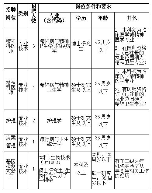 附:合肥市第四人民医院2020年公开招聘岗位计划表