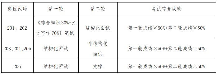 2、岗位代码201、202岗第一轮设定最低分数线60分,岗位代码203、204、205、206岗第一轮设定最低分数线70分。