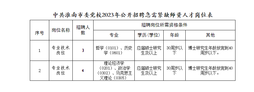2023年中共淮南市委党校引进急需紧缺师资人才招聘公告