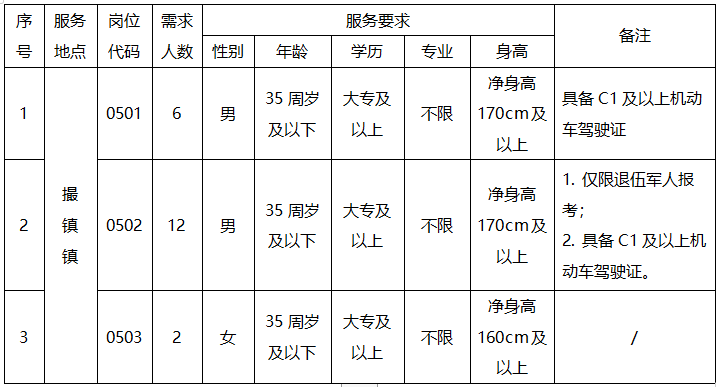 计划招聘城市管理辅助项目服务人员20名,具体要求如下表: