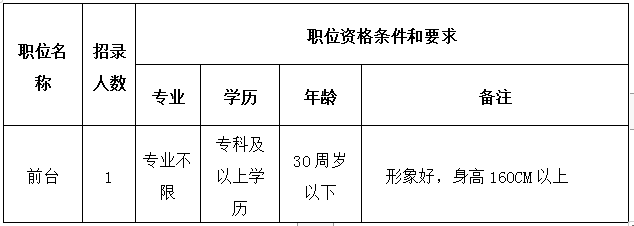 因工作需要,现特面向社会公开招聘前台工作人员。现就有关事项通知如下:
