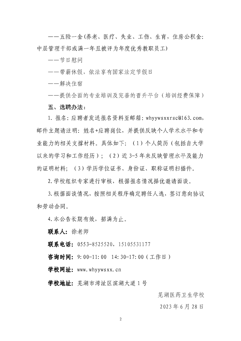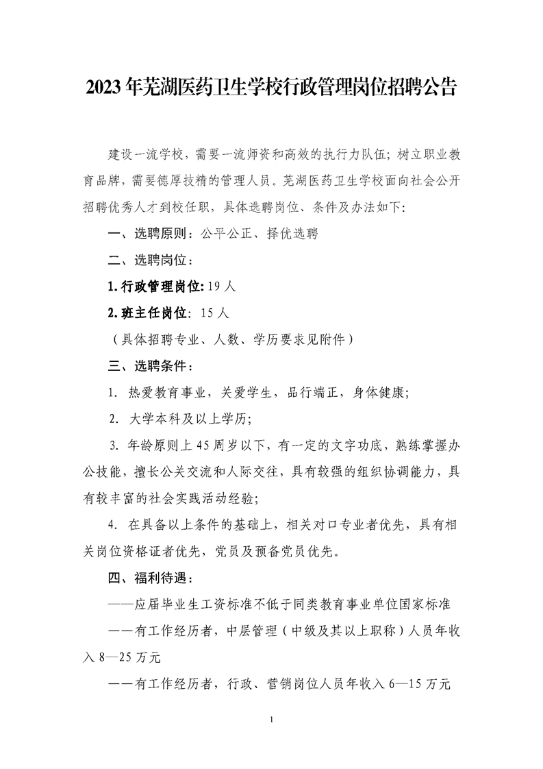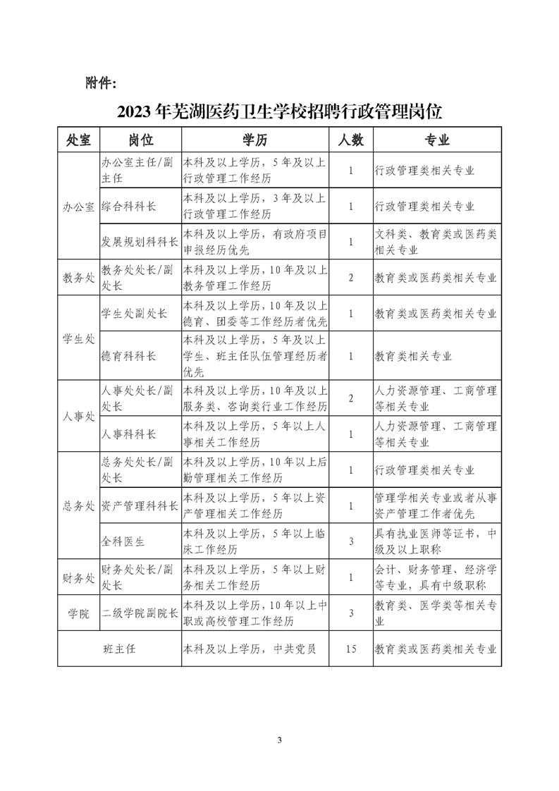 2023年芜湖医药卫生学校行政管理岗位招聘公告