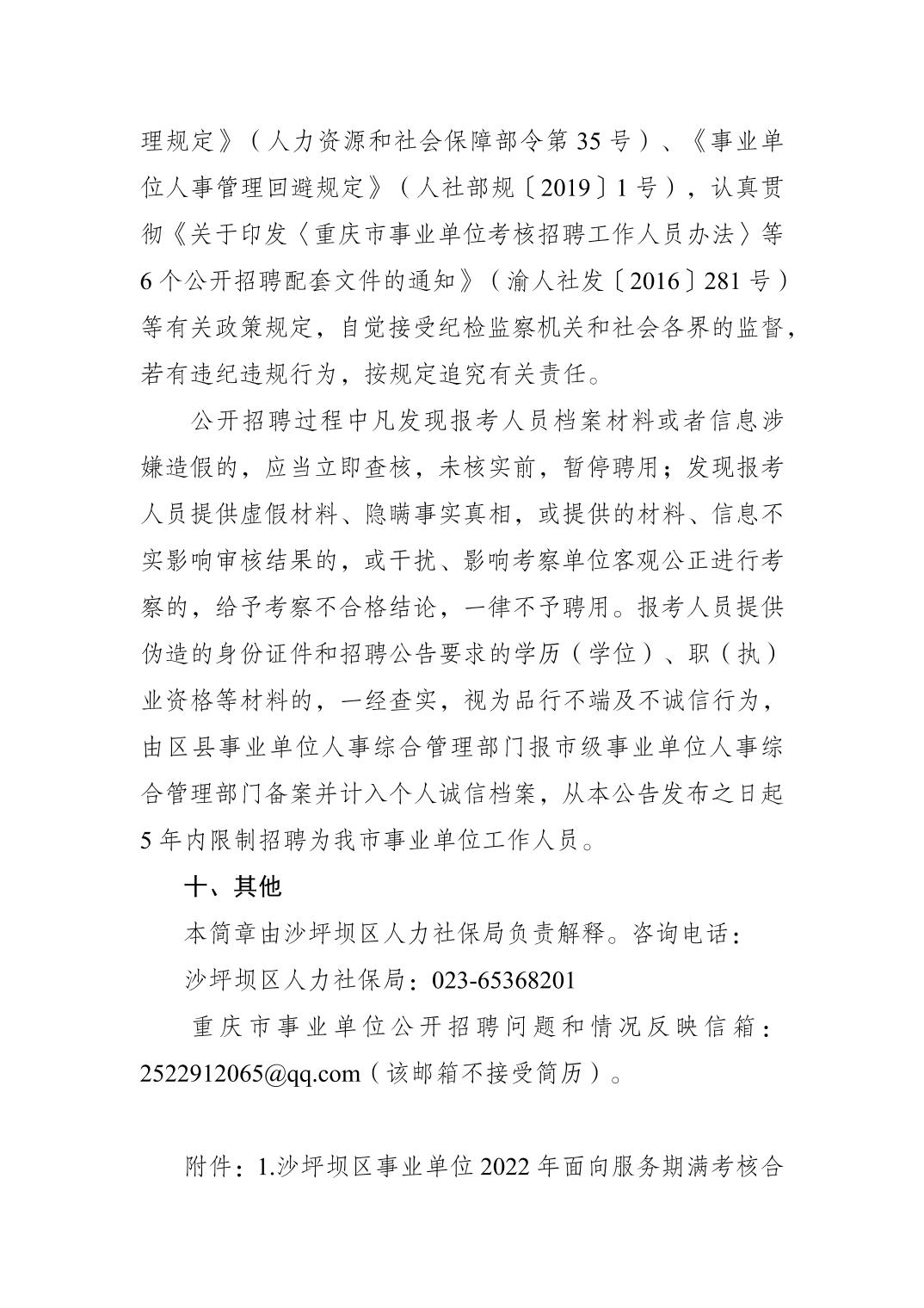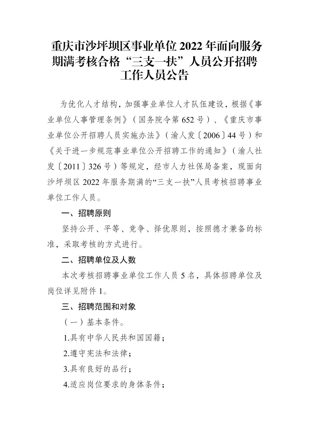 2022年重庆沙坪坝区事业单位面向服务期满考核合格“三支一扶”人员招聘工作人员公告