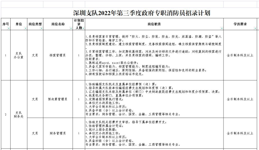 2022年第三季度深圳市消防救援支队政府专职消防员招聘公告