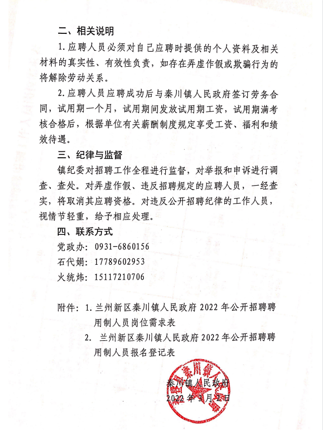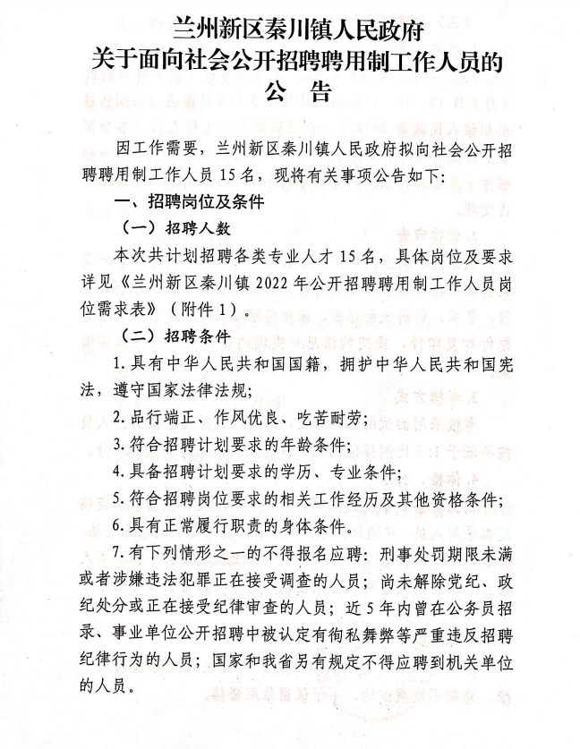 2022年兰州新区秦川镇人民政府面向社会公开招聘聘用制工作人员公告