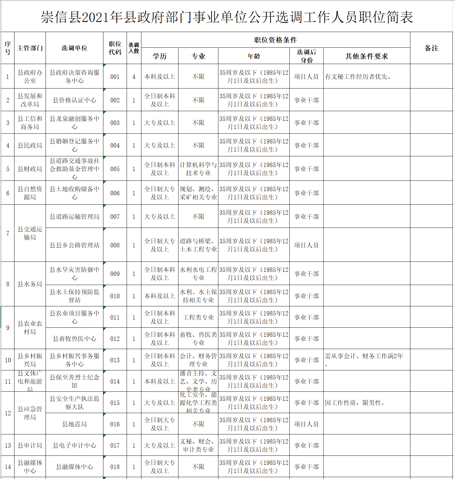 附件:1.崇信县2021年县政府部门事业单位公开选调工作人员职位简表