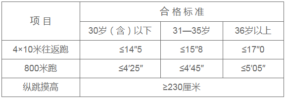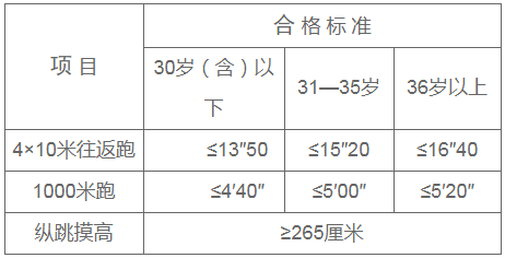 2.参照《公安机关录用人民警察体能测评项目和标准(暂行)》,项目和合格标准设置如下: