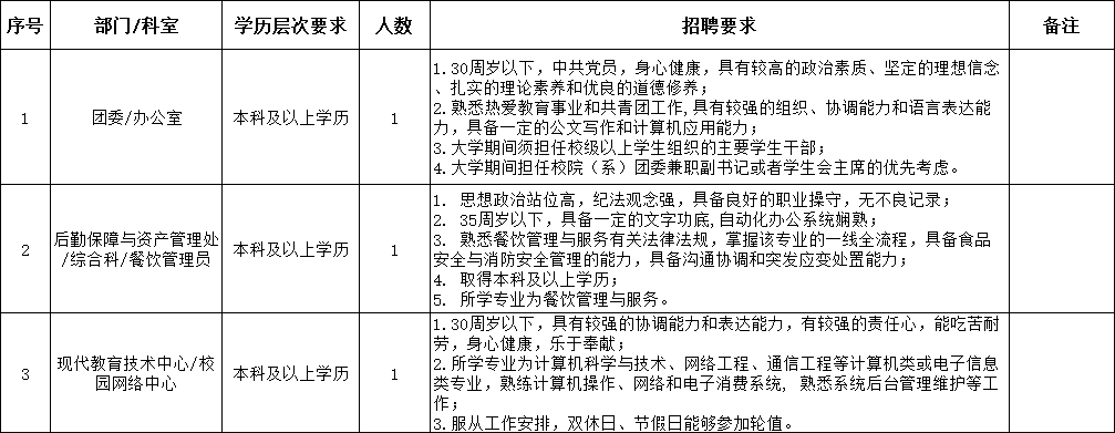 学校实行合同聘用制,行政人员每个聘任期限为2年,聘任期满后经考核合格,符合聘任要求者予以续聘。人事关系转入我校后,办理养老、医疗、失业、工伤、生育等保险和住房公积金,加入教育工会,享受有关福利待遇。符合郑州市青年人才储备计划政策的博士、硕士和本科毕业生还可以从政府分别按每月1500元、1000元、500元的标准申领3年的生活补贴。