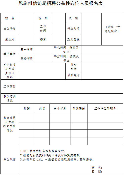 附件:恩施州信访局招聘公益性岗位人员报名表