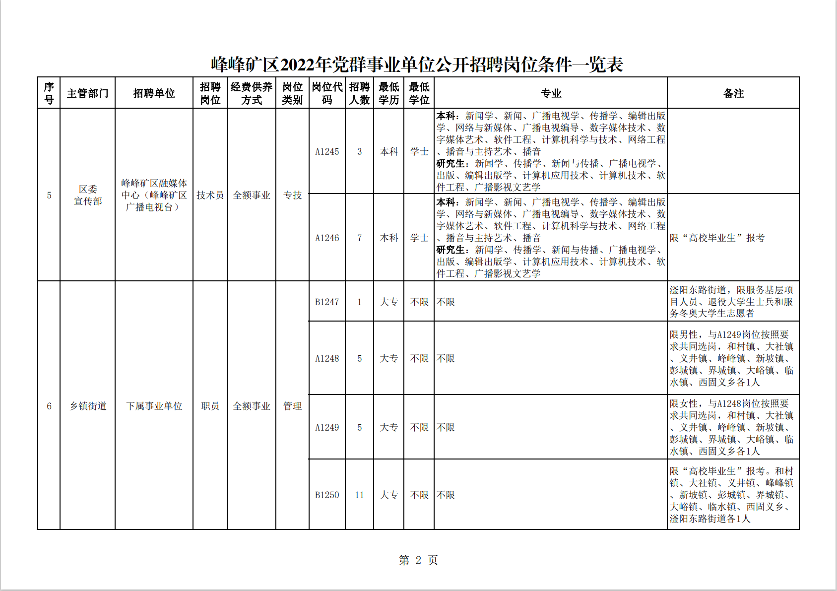 峰峰矿区融媒体中心(峰峰矿区广播电视台)10人,其中限“高校毕业生”报考岗位7名。