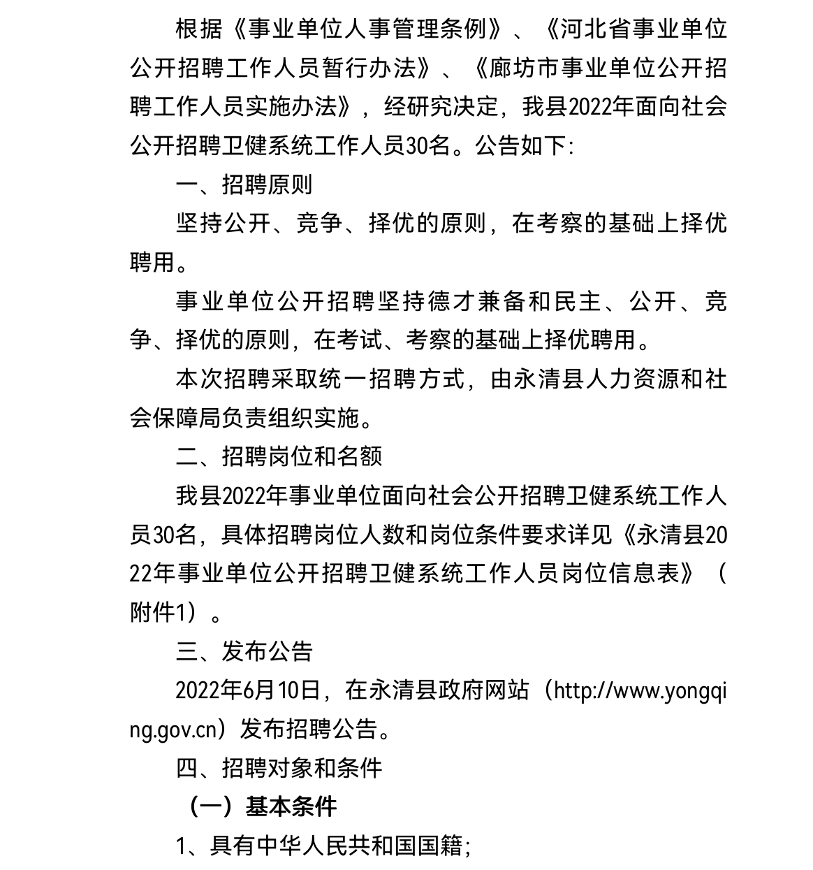 2022年廊坊永清县事业单位公开招聘卫健系统工作人员公告
