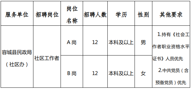 2023年河北雄安新区容城县人力资源和社会保障局公开补招社区工作者公告