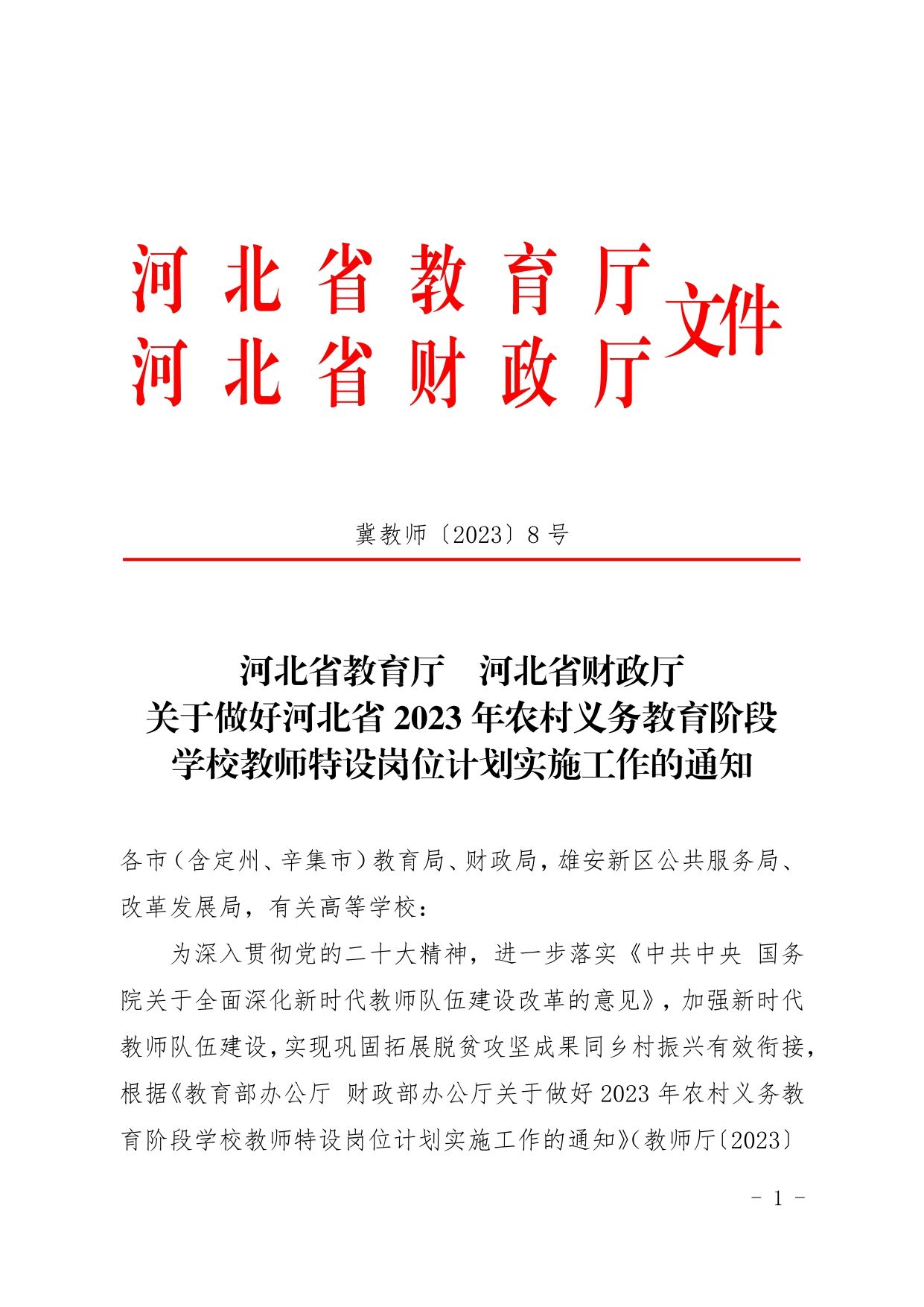 2023-06-19 17:01:32阅读()河北特岗教师招聘服务平台关于做好河北省2023年农村义务教育阶段学校教师特设岗位计划实施工作的通知