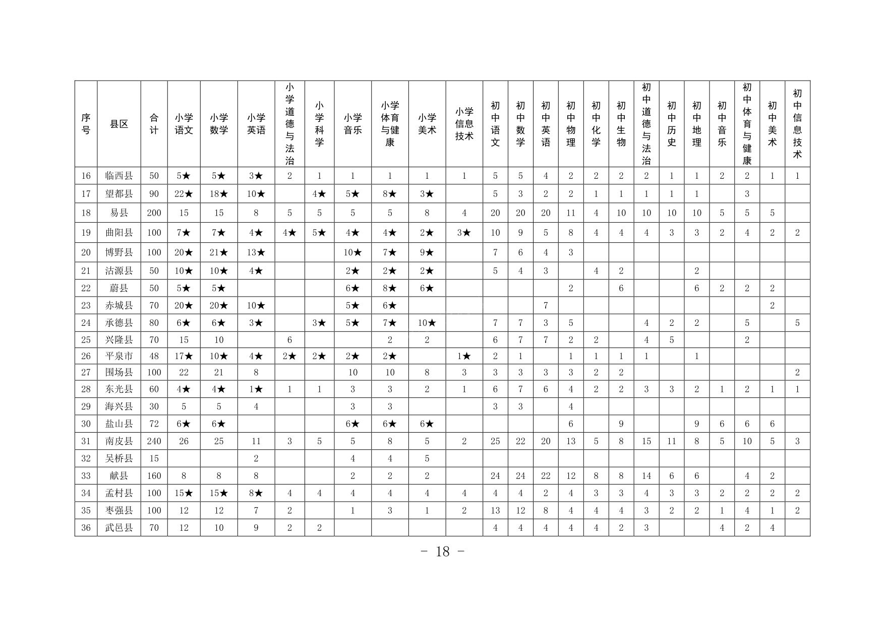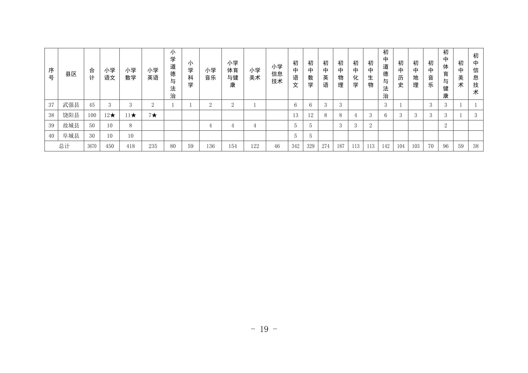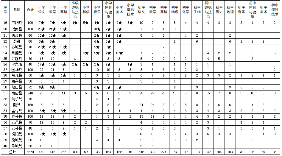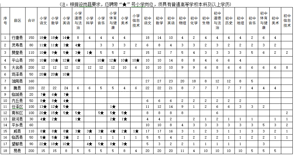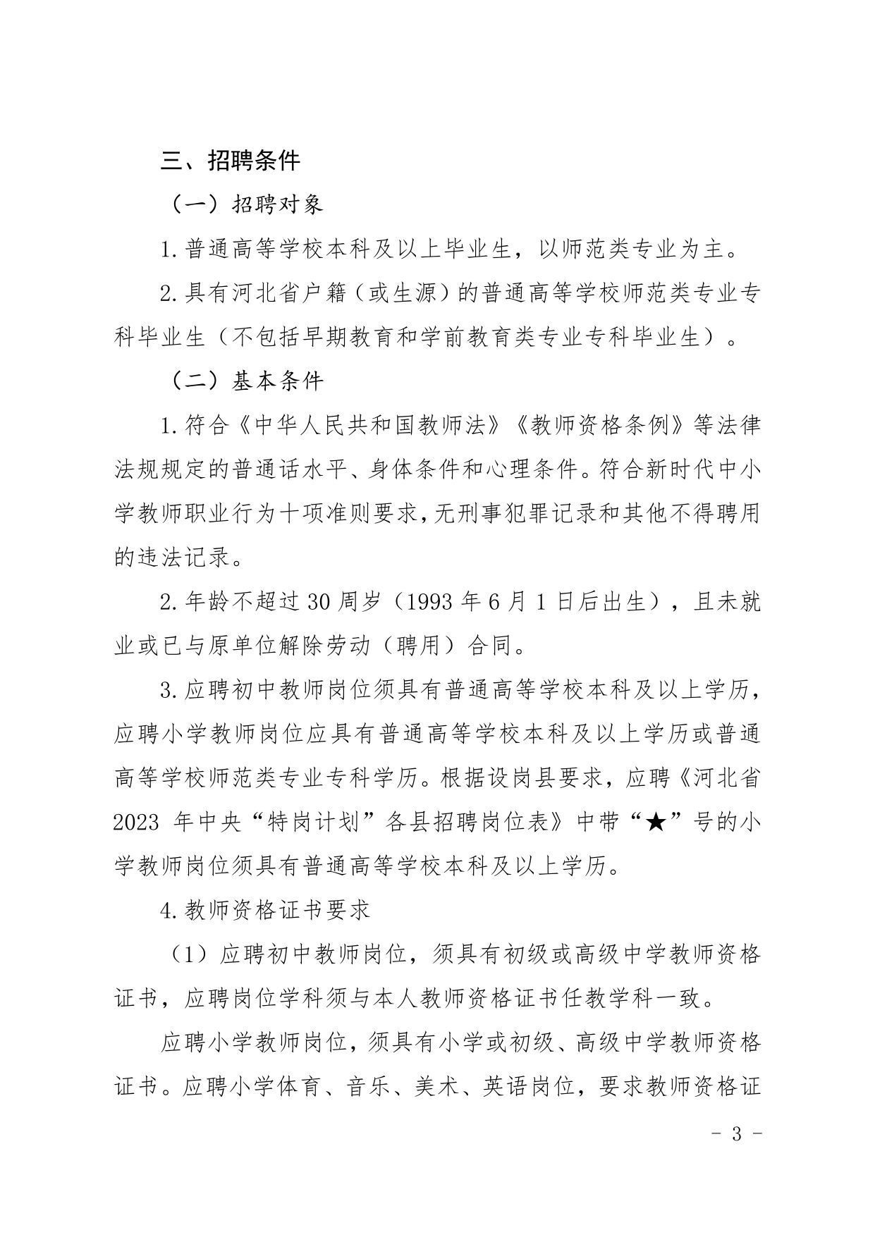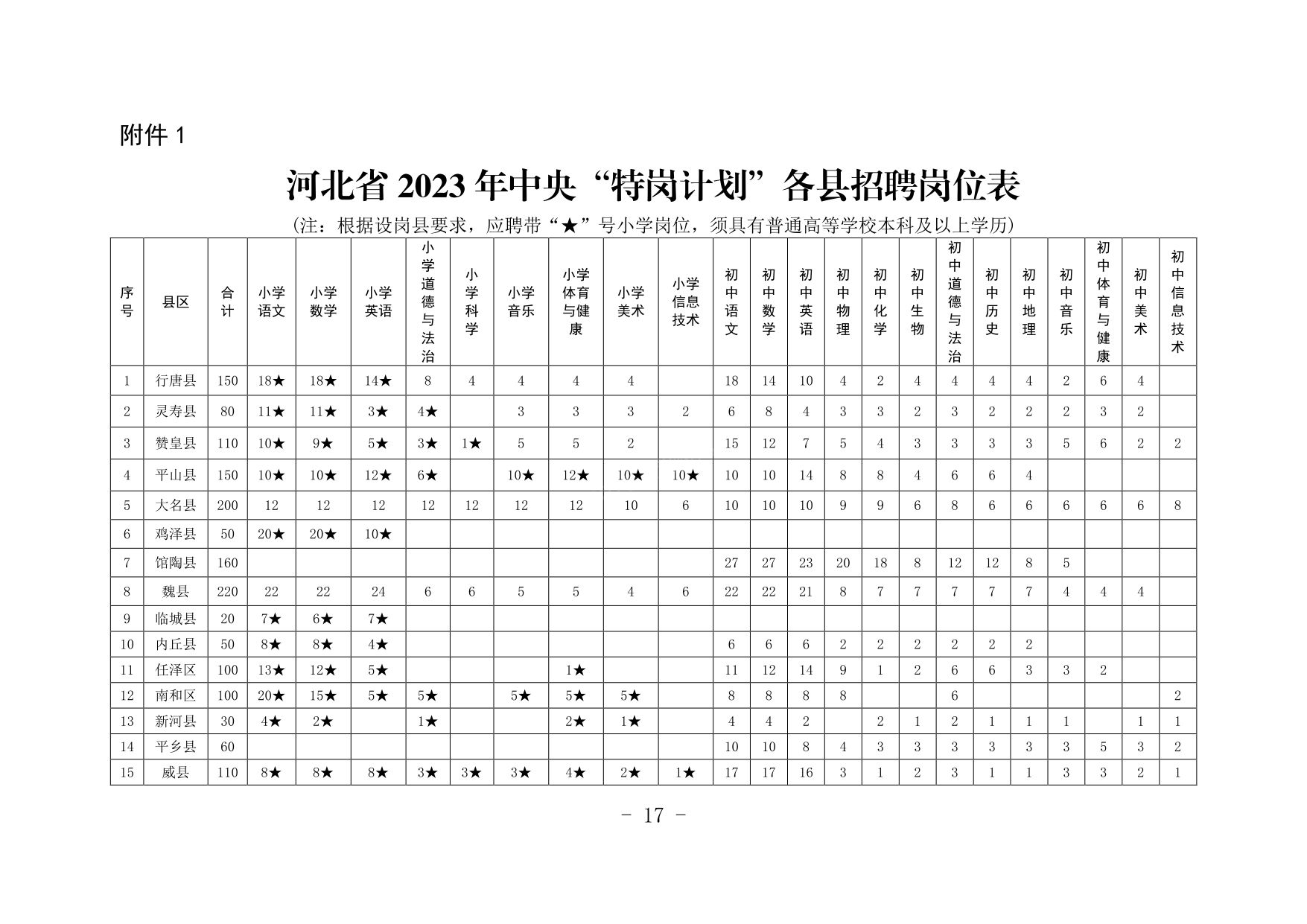 河北省2023年中央“特岗计划”各县招聘岗位表