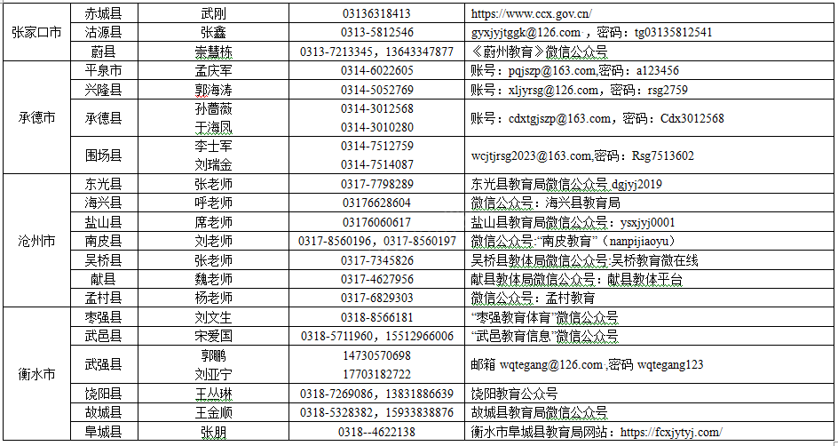 河北省2023年特岗教师招聘设岗县联系方式一览表